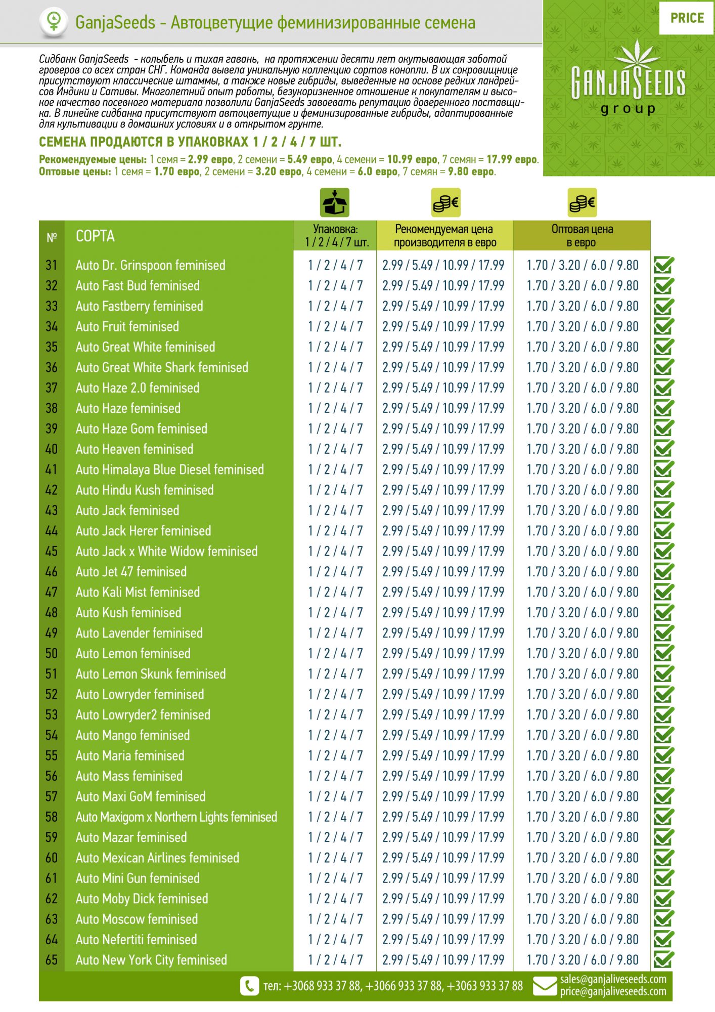Многолетний опыт работы, безукоризненное отношение к покупателям и высокое качество посевного материала позволили GanjaSeeds завоевать репутацию доверенного поставщика. В линейке сидбанка присутствуют автоцветущие и феминизированные гибриды, адаптированные для культивации в домашних условиях и в открытом грунте.