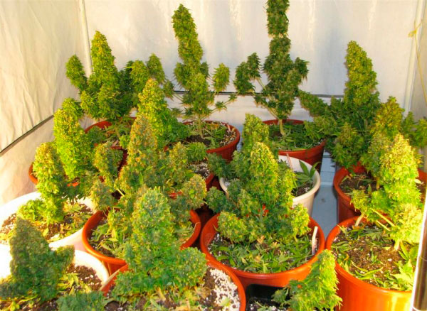 В полной мере это относится к растениям небольшой высоты (30-80 см). Именно этот сорт конопляной культуры наиболее востребован у коноплеводов. Средняя высота растения позволяет выращивать каннабис в открытом или закрытом грунте, и что важно – плантацию марихуаны трудно разглядеть. Этим не ограничиваются достоинства автоцветущих семян: благодаря короткому жизненному циклу растений влажность, вредители, плесень и болезни не успевают развернуться в полную силу и воспрепятствовать росту растений.