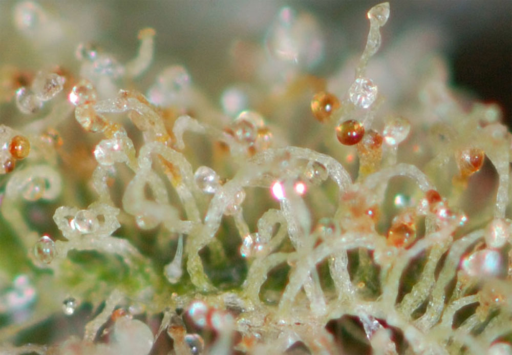 Трихомы имеют самую разнообразную форму и располагаются в огромных количествах на шишках конопли, распространяясь в более скромных масштабах по остальным частям куста. Они очень маленькие и рассмотреть их можно только через лупу.