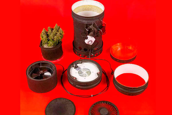 Нижняя часть первого ведра используется для грунта, а верхней части отводится роль стенок “микробокса”. Желательно, чтобы боковая поверхность обладала хорошим светоотражающим эффектом. В дне высверливают дренажные отверстия для отвода воды, сюда же укладывают 10-литровый гроубэг с почвой. К стенке крепят 12-вольтовый блок для питания вентиляционных кулеров.